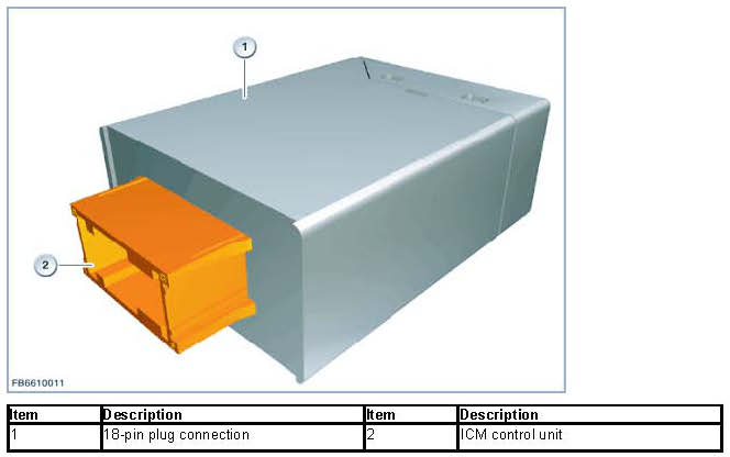 The ICM control unit is installed on the transmission tunnel under the centre console.