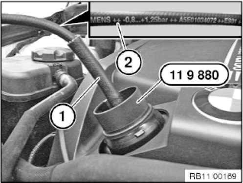 Attach 25 bar pressure sensor (1) to special tool 11 9 880.