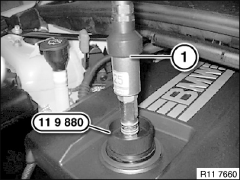 Insert special tool 11 9 880 hand-tight into oil filler neck opening.