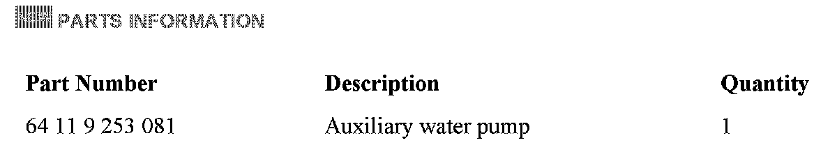 Remove the auxiliary water pump (follow Repair Instruction REP 64 11 262 Removing and installing/replacing auxiliary water pump), and remove the original water pump bracket. Install the new water pump equipped with the modified bracket. When reinstalling the pump, ensure that the connecting hoses do not come into contact with adjacent components.