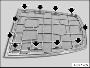 Unclip trim (1) with special tool 00 9 325 from latch mechanisms and remove upwards.
