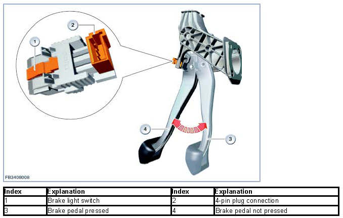 The two redundant signals from the brake light switch are forwarded for example to the Digital Engine Electronics (DME).