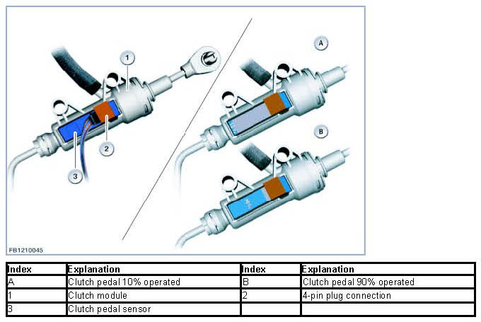 On vehicles with manual gearboxes, the clutch module at the clutch pedal picks up the clutch position: