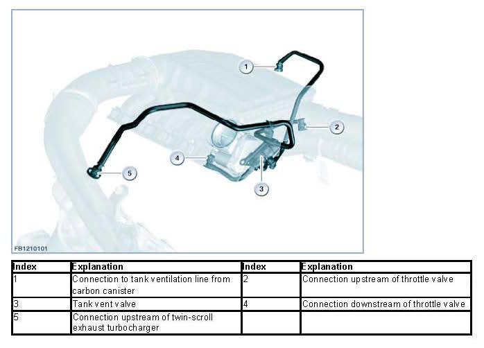 1. from the fuel tank ventilation valve via the suction jet pump valve before the twin-scroll exhaust turbocharger