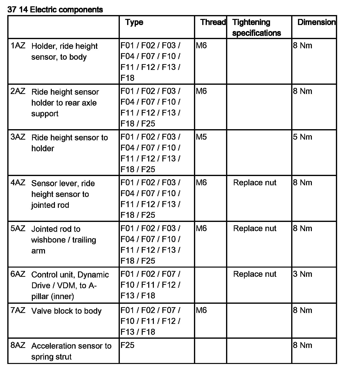 Tightening torque 37 14 5AZ.