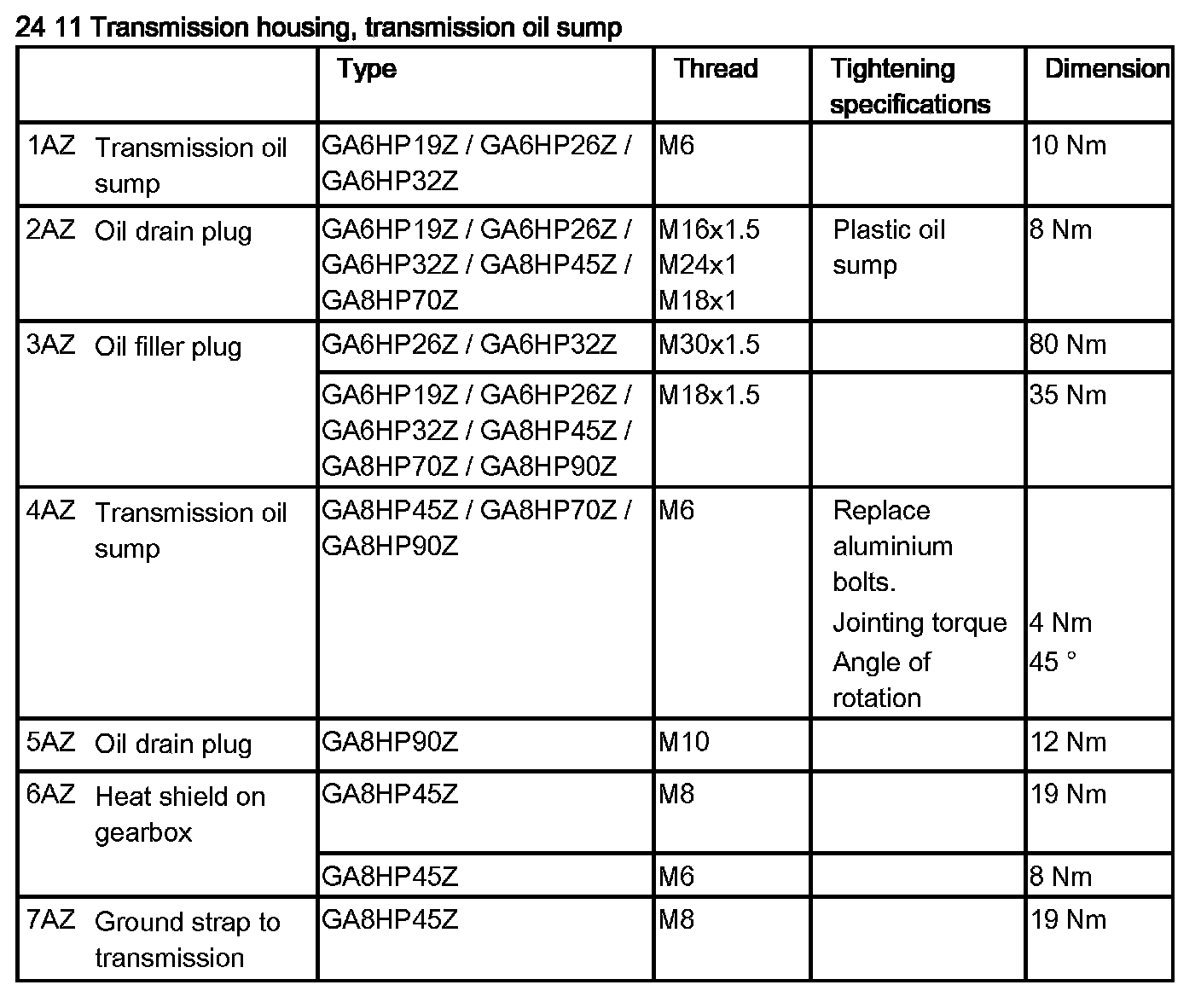 Tightening torque: 24 11 3AZ.