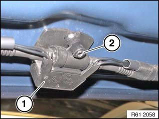 If necessary, adjust left/right or middle washer jet (1) by way of screw (2).