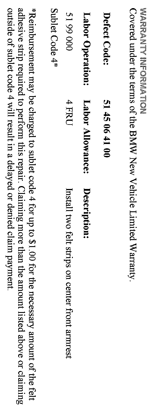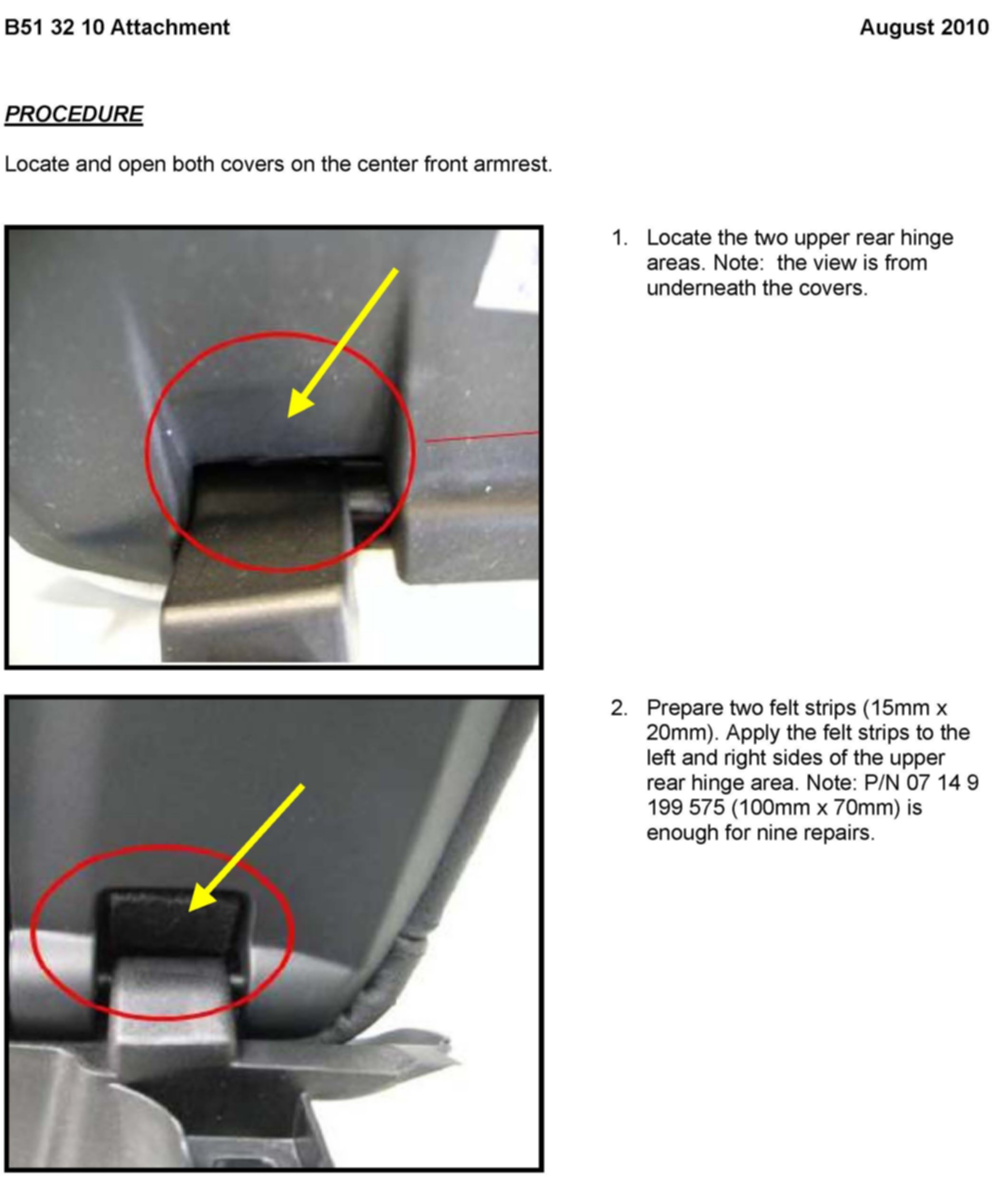 The customer may complain of a rattle noise from the center front armrest. The noise may be heard if weight is applied to the center front armrest by using one's arm or while driving on a rough road.