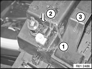 - Make sure connecting socket (2) is correctly seated in storage compartment (3)