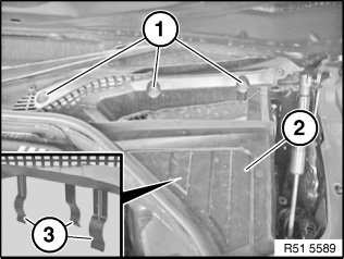 Holders (3) must snap into place in suspension cross-brace when cover (2) is installed.