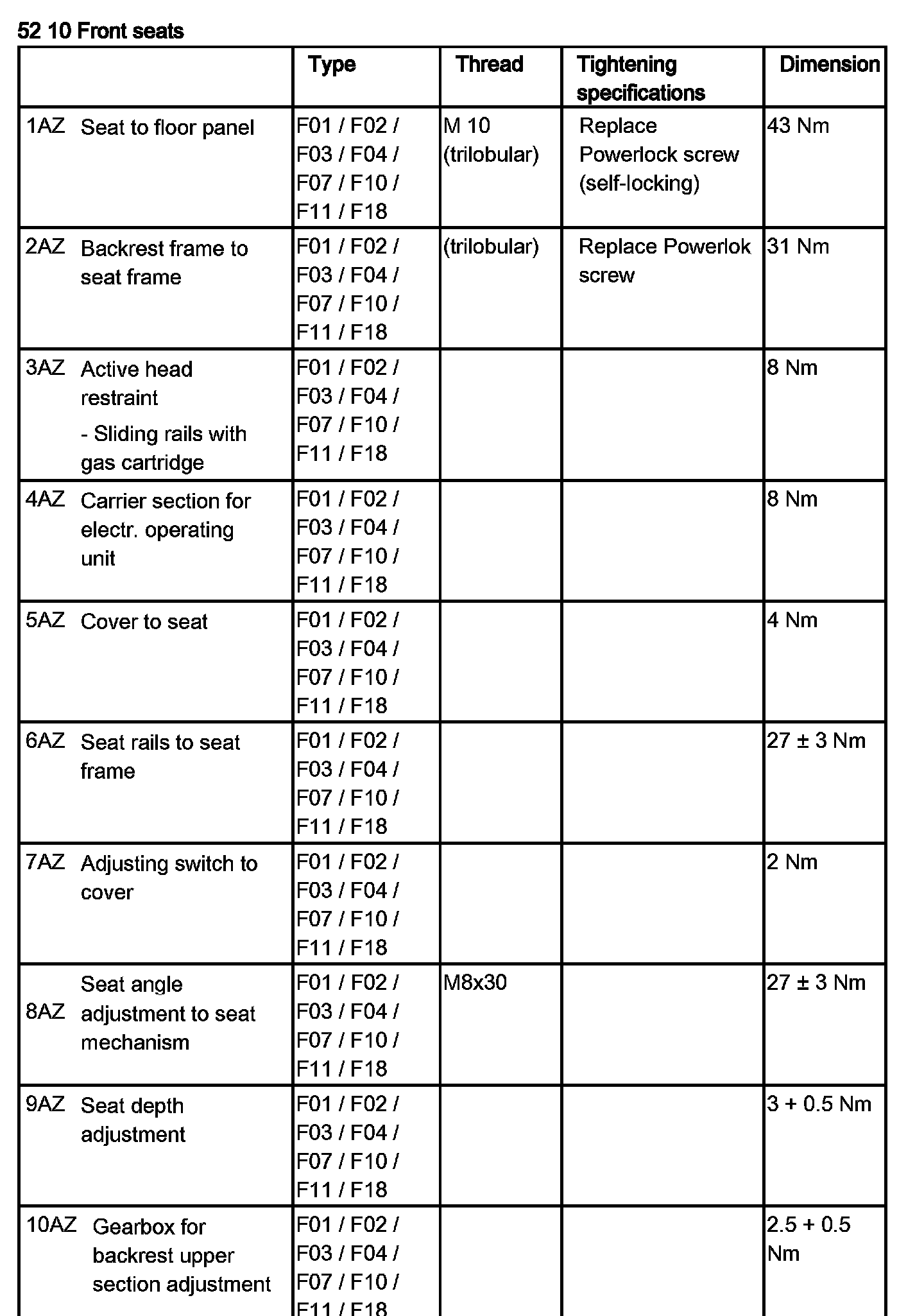 52 17 030 Removing and Installing/Replacing Backrest Frame For Front Passenger Seat