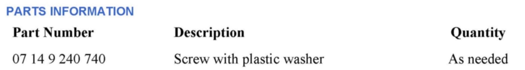 5. If the screws are missing, replace the two screws with P/N 07 14 9 240 740.