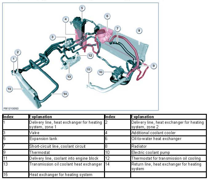 The European version has been fitted with an additional coolant cooler on the left-hand side of the vehicle. The additional coolant cooler is connected to the coolant lines parallel to the radiator, thus enlarging the surface area for engine cooling. Engine oil cooling is implemented by means of an oil-to-water heat exchanger.