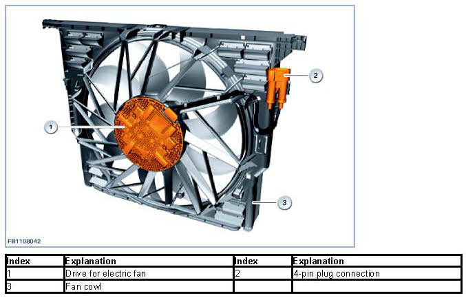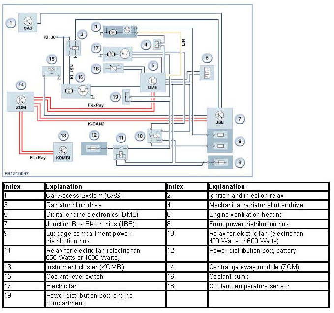 For the after-run of the electric fan, the Digital Engine Electronics (DME) lower the frequency to 10 Hz. The pulse duty factor is used to select the time (maximum 11 minutes) and speed of the electric fan.