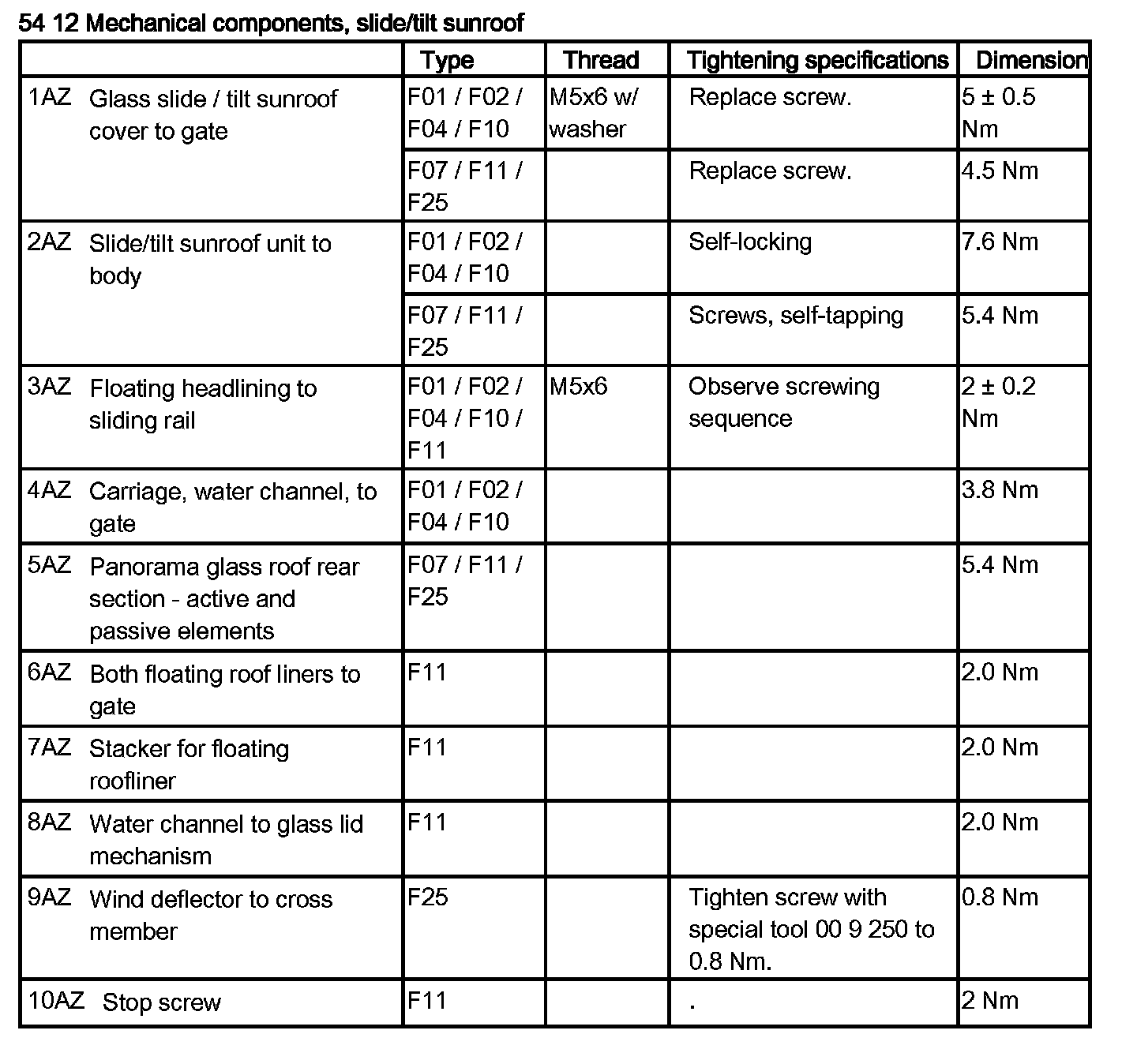 54 12 Mechanical Components, Slide/Tilt Sunroof