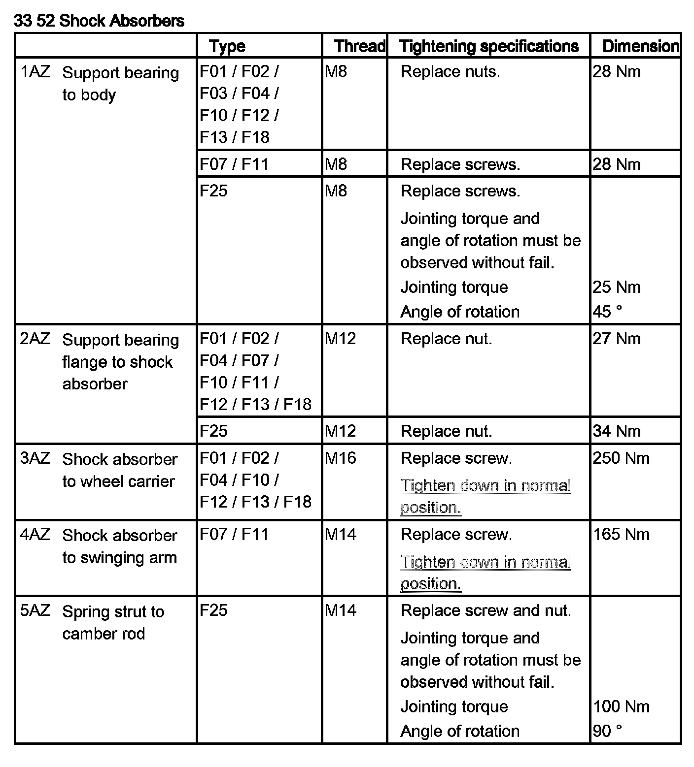 33 52 000 Removing and Installing/Replacing Rear Left or Right Shock Absorber