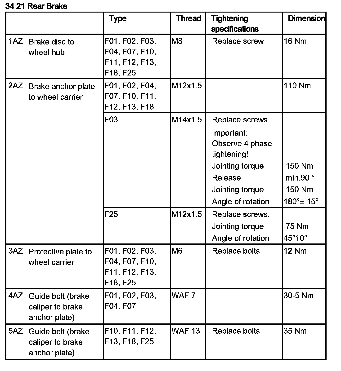 Tightening torque 34 21 3AZ.