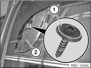 As a repair solution for "Dashboard squeaks and rattles", there are new dashboard oval-head screws (1) with a second washer available under part number 07 14 9 240 740. If a new version has not yet been installed, retrofit the dashboard oval-head screws (1) on the top left and right on the dashboard (2).