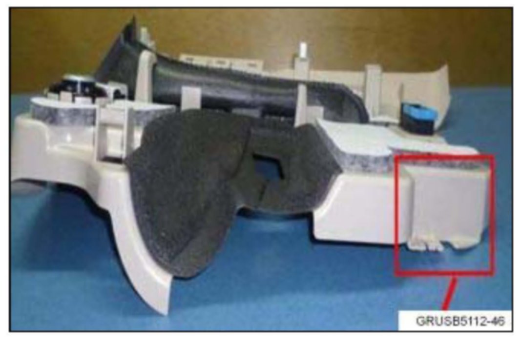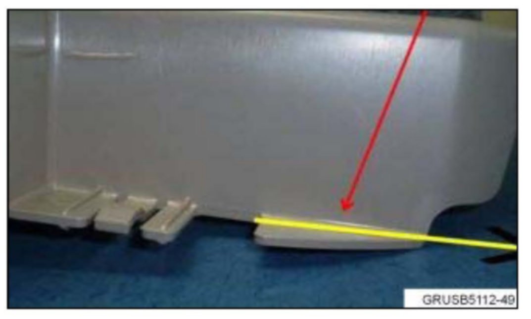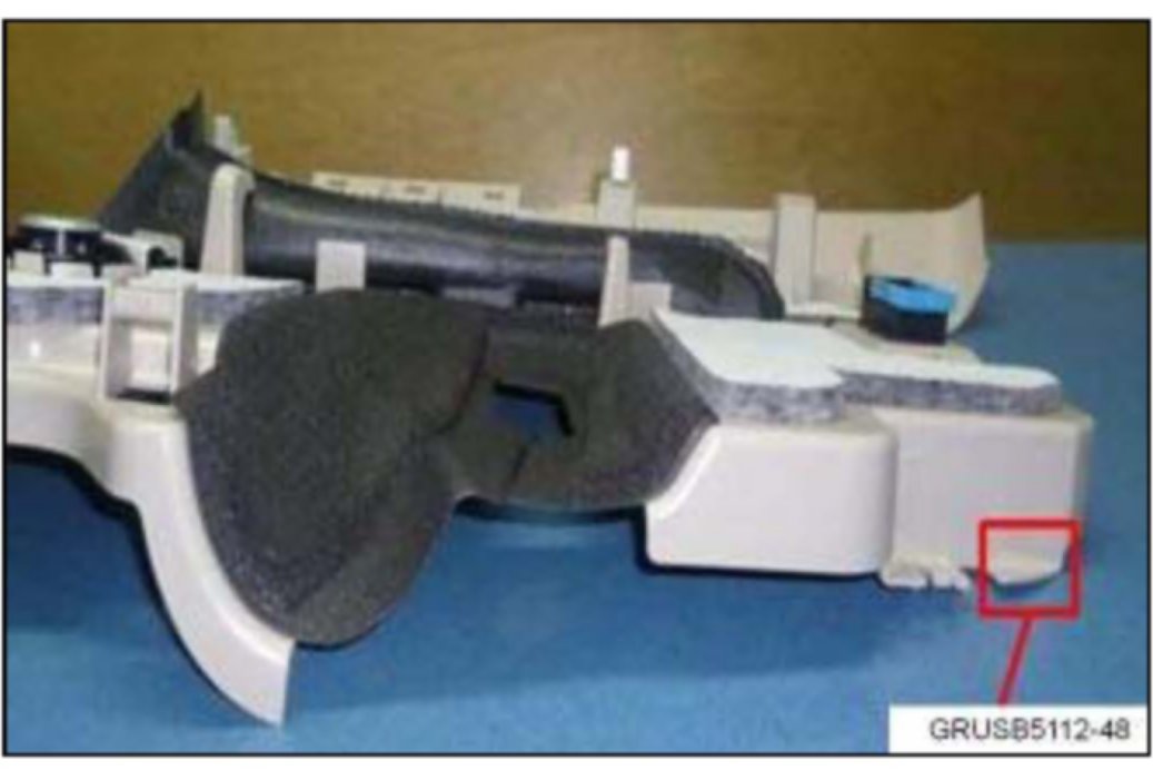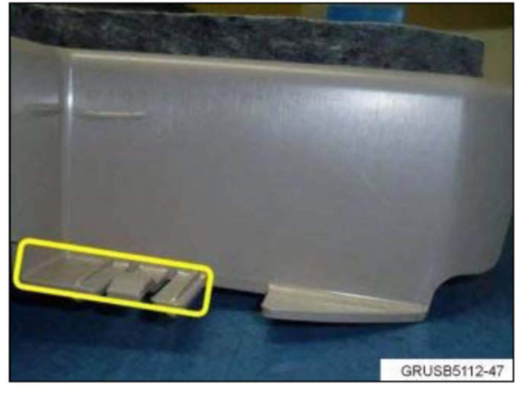 5. Use a proper tool, and cut off the plastic corner tab along the yellow line. Reinstall the trim and confirm the noise is gone. Lightly tap in the same area to confirm the noise is gone.