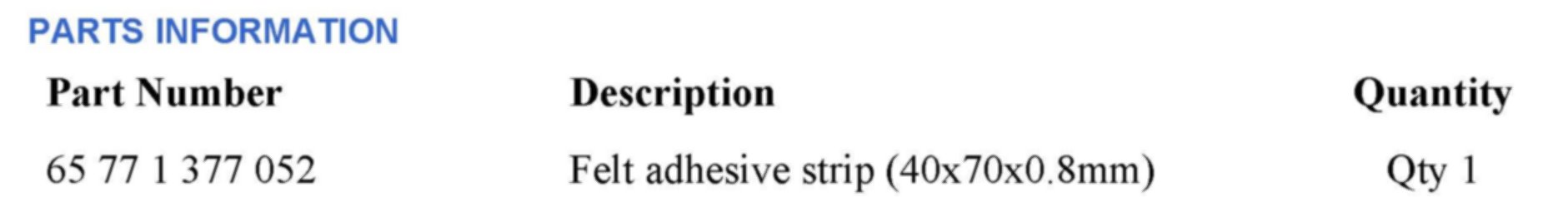 3. Apply a self-adhesive felt strip, measuring 20x60x0.8 mm, to the trim area shown in the yellow box.