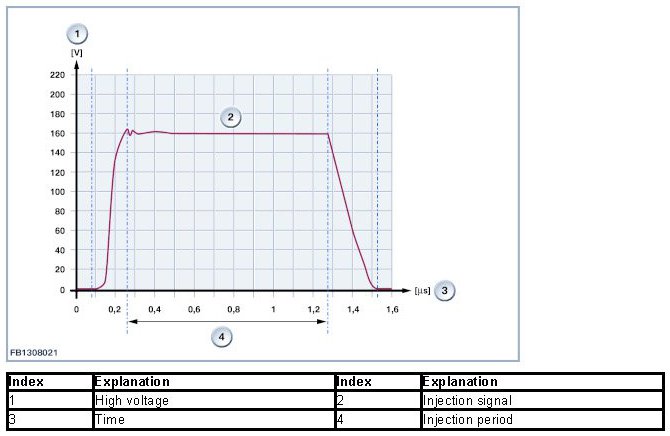 The nozzle opening period and opening stroke are specified by the engine control. The nozzle opening period is controlled via the fuel injection signal (Ti signal). The opening stroke is controlled via the energy quantity used for activation of the injector.
