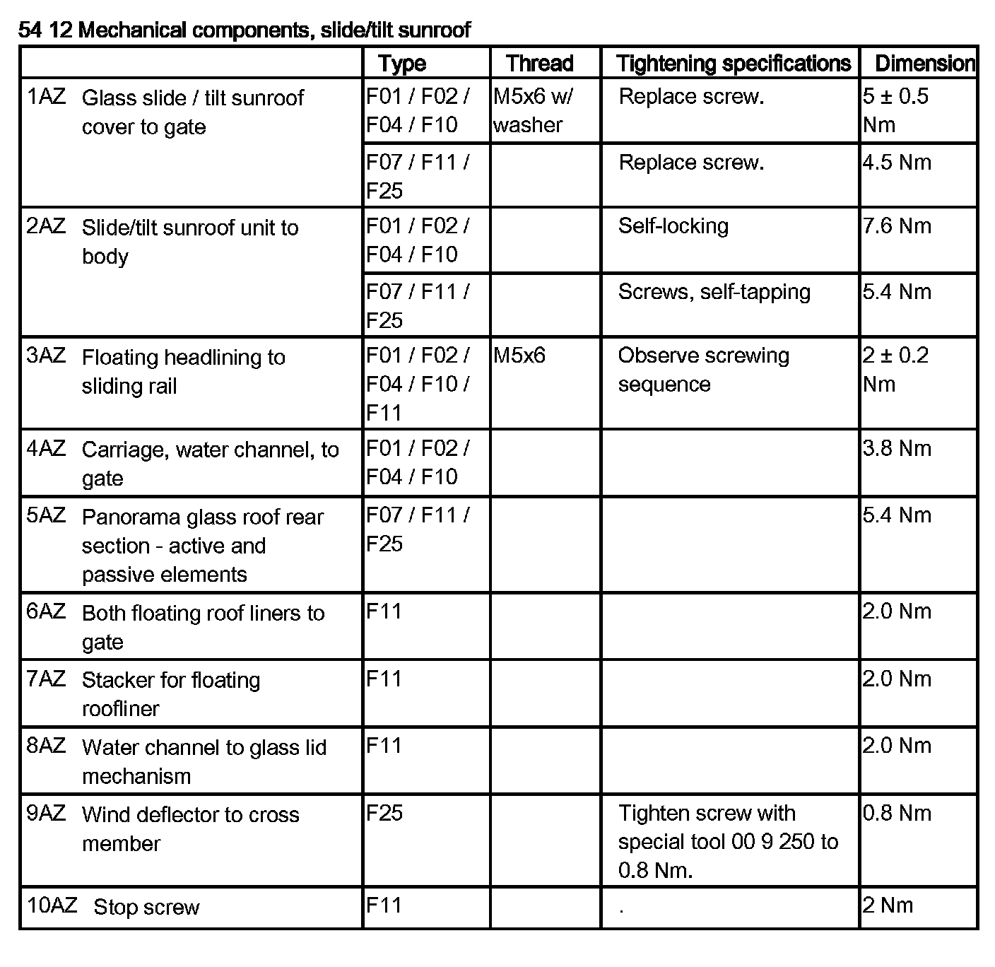 54 12 Mechanical Components, Slide/Tilt Sunroof