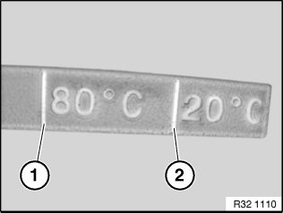 With engine at operating temperature do not exceed "Max. marking 80 ° C" (1).