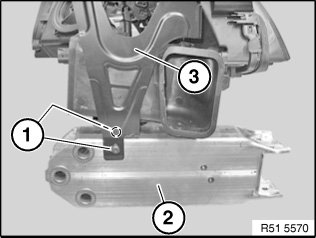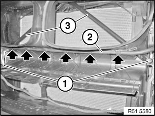 Radiator air duct retaining lugs (front) (1) must not be damaged.