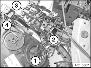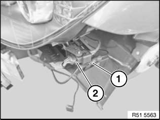 Unlock plug connection (1) on headlights (4) and disconnect.
