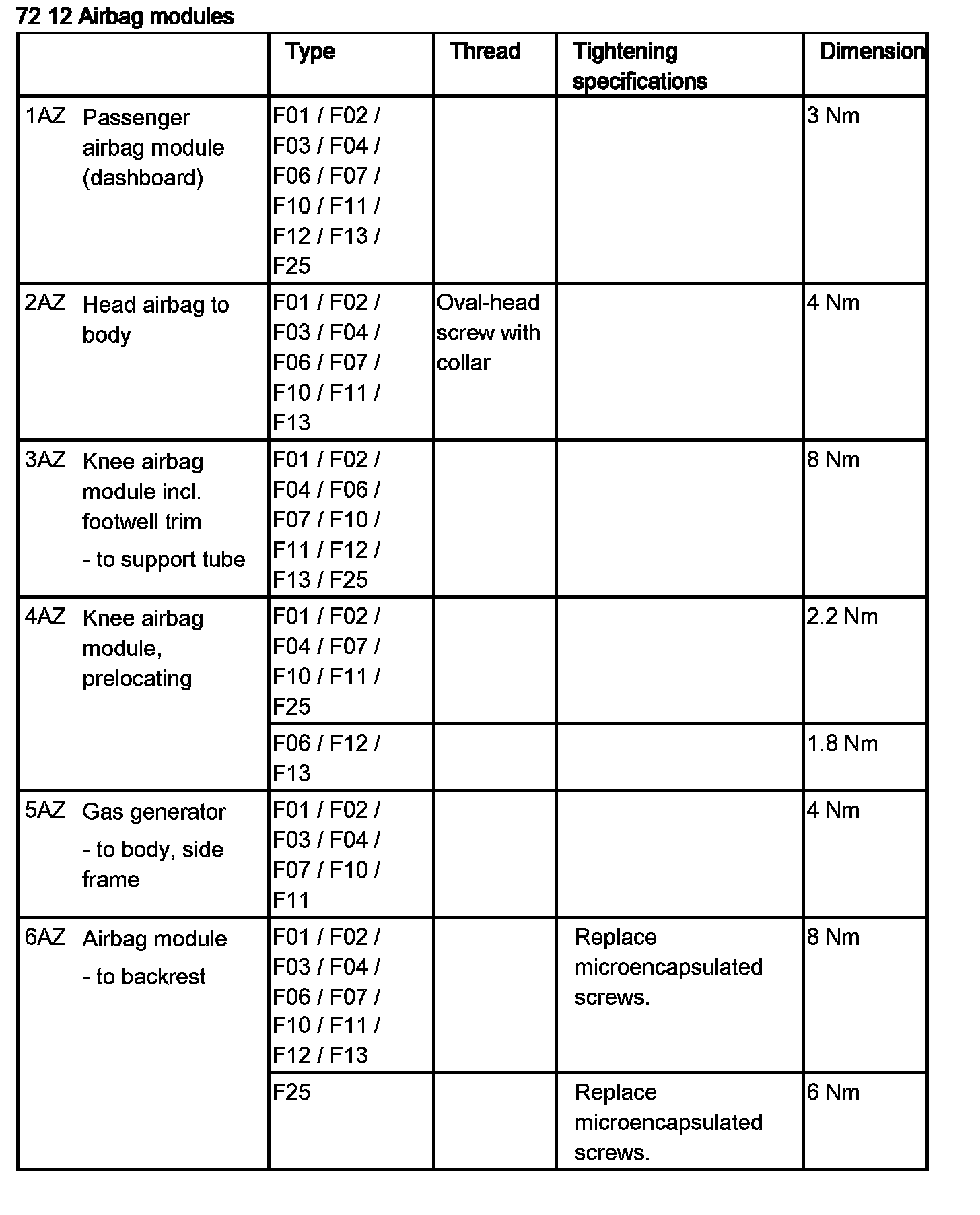 72 12 Airbag Modules