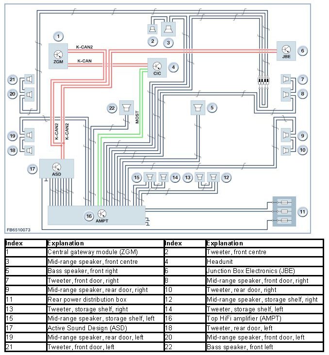 The audio amplifier is connected to "terminal 30" and GND for voltage supply. The audio amplifier is woken up using the MOST bus. The audio amplifier is active under the following preconditions: