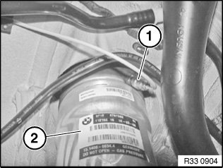 Detach pipe from air supply unit (1) and air spring strut (2).