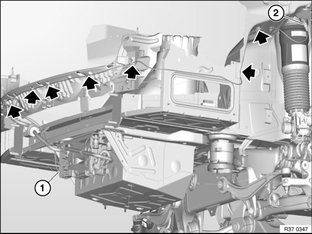 To avoid leaks in the air spring system, it is essential to avoid scratches on pipes in particular in the connection area!