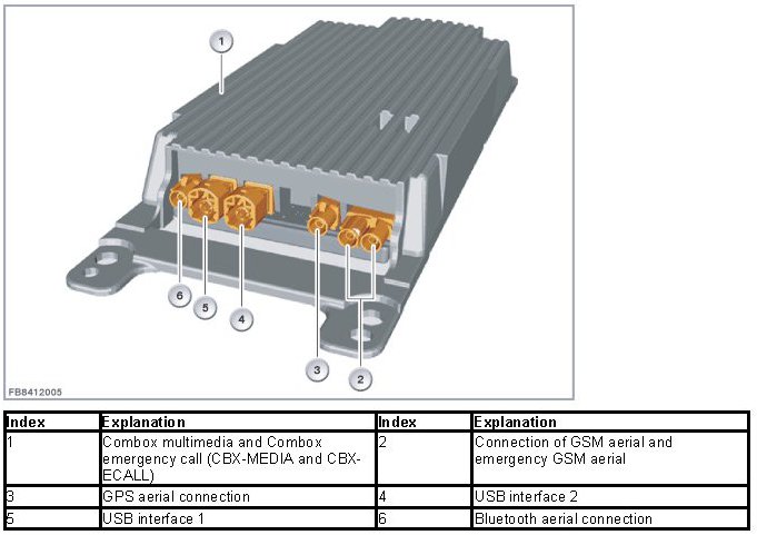 If the vehicle is not fitted with a navigation system, the Combox emergency call is made via its own GPS module and its own connection to the GPS aerial. If the vehicle is fitted with a navigation system, the Combox emergency call is made from the headunit with the position data.
