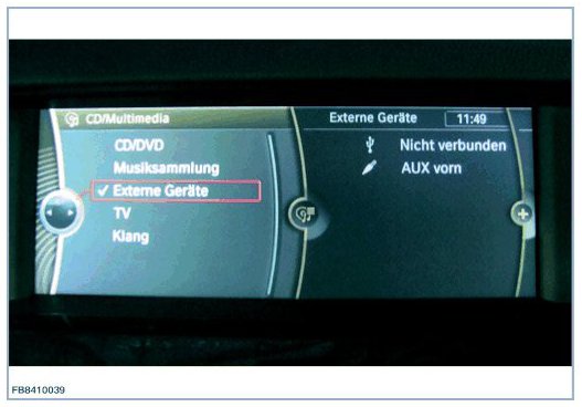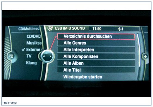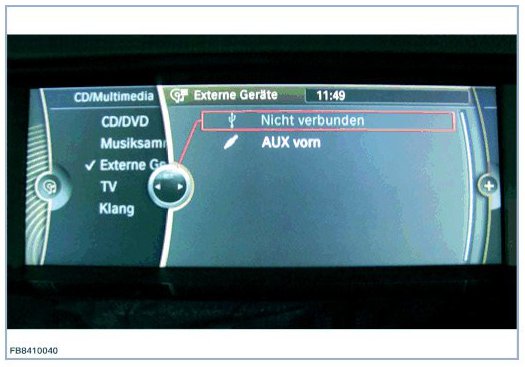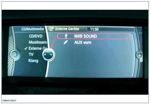 NOTE: Only perform USB test with the USB cable provided in the scope of delivery of the IMIB. Always perform USB tests directly at the USB connection of the vehicle. Do not use extension cables, USB hubs etc.