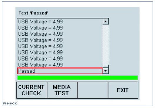 The test takes approx. 3 minutes and the progress of the test is indicated by the green bar in the display of the IMIB. It must also be possible to play the music files in the vehicle within those 3 minutes. Pay attention to the volume setting in the vehicle when doing this.
