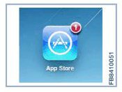 An example of the display that appears when a software update for an application is available can be seen in the graphic. The number of available software updates for all applications installed on the terminal device is displayed in the red spot.