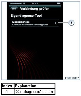 NOTE: The service employee must have special knowledge of BMW Connected in order to perform the self-diagnosis in accordance with specifications and interpret the information. The employee must be given suitable training beforehand. The BMW Connected page in the ASAP (Aftersales Assistance Portal) is available to the employee for assistance. It is also advisable to have an original Apple(TM) USB cable available for testing at the service employee's workplace.