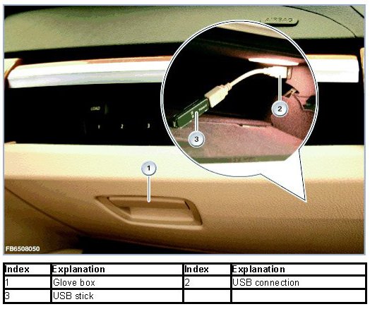 There is a USB port in the glove box. The data of a USB stick (music files in the format MP3, WMA or AAC) can be imported via this USB port.