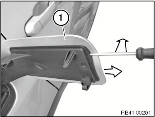 Use a suitable tool to lift the latch mechanism out toward the front in direction of arrow.