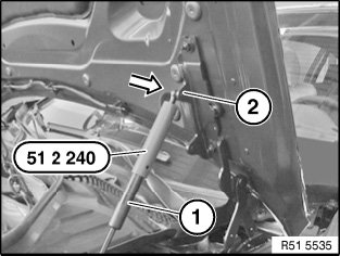 Clip ball socket of special tool 51 2 240 onto ball stud (2).