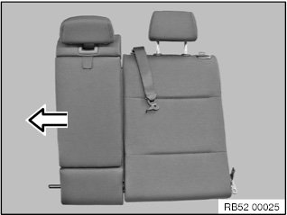 Remove centre rear seat backrest from support of left-hand backrest in direction of arrow.