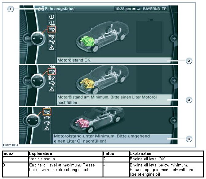 NOTE: The M GmbH vehicles retain the oil condition sensor. However, the new display and operating concept will also be introduced here.