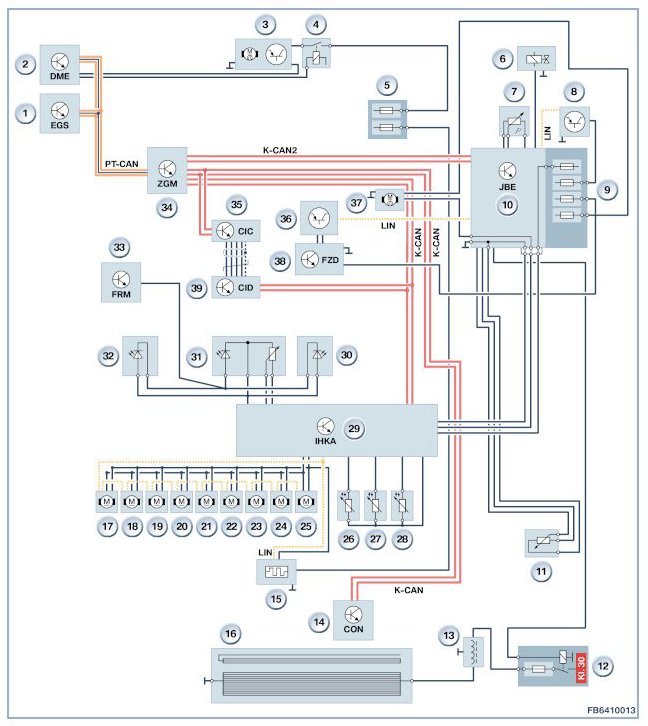 The electric auxiliary heater is activated by the IHKA control unit via the LIN bus.