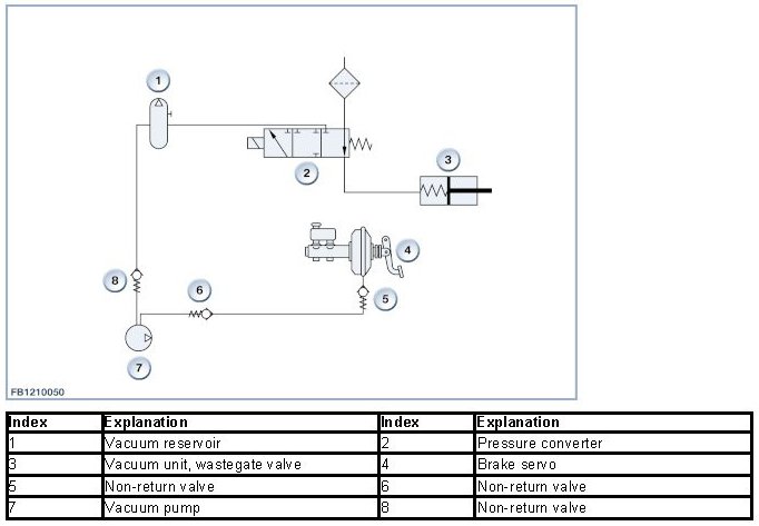 The engine has a vacuum pump to generate the necessary partial vacuum for the brake servo and auxiliary consumer units (for example wastegate valve or model-specific exhaust flap. So that an adequate partial vacuum is available at any time, a vacuum reservoir is used.