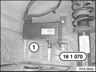Using special tool 16 1 070, seal opening (1) on carbon canister.