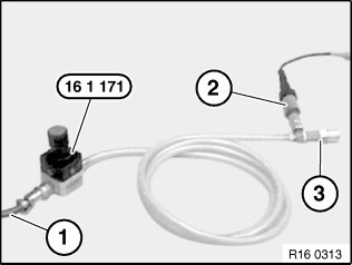 IMPORTANT: Do not connect quick-release coupling (3) of special tool 16 1 171 as yet.