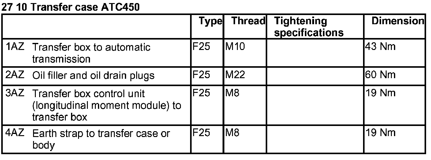 27 00 ... Replenishing / changing transfer box oil (ATC 450)