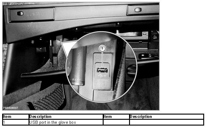 There is a USB port in the glove box. The data of a USB stick (music files in the format MP3, WMA or AAC) can be imported via this USB port.