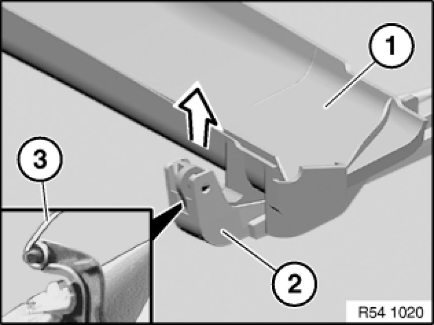 Carefully unclip drip moulding (1) upwards out of carrier (2).